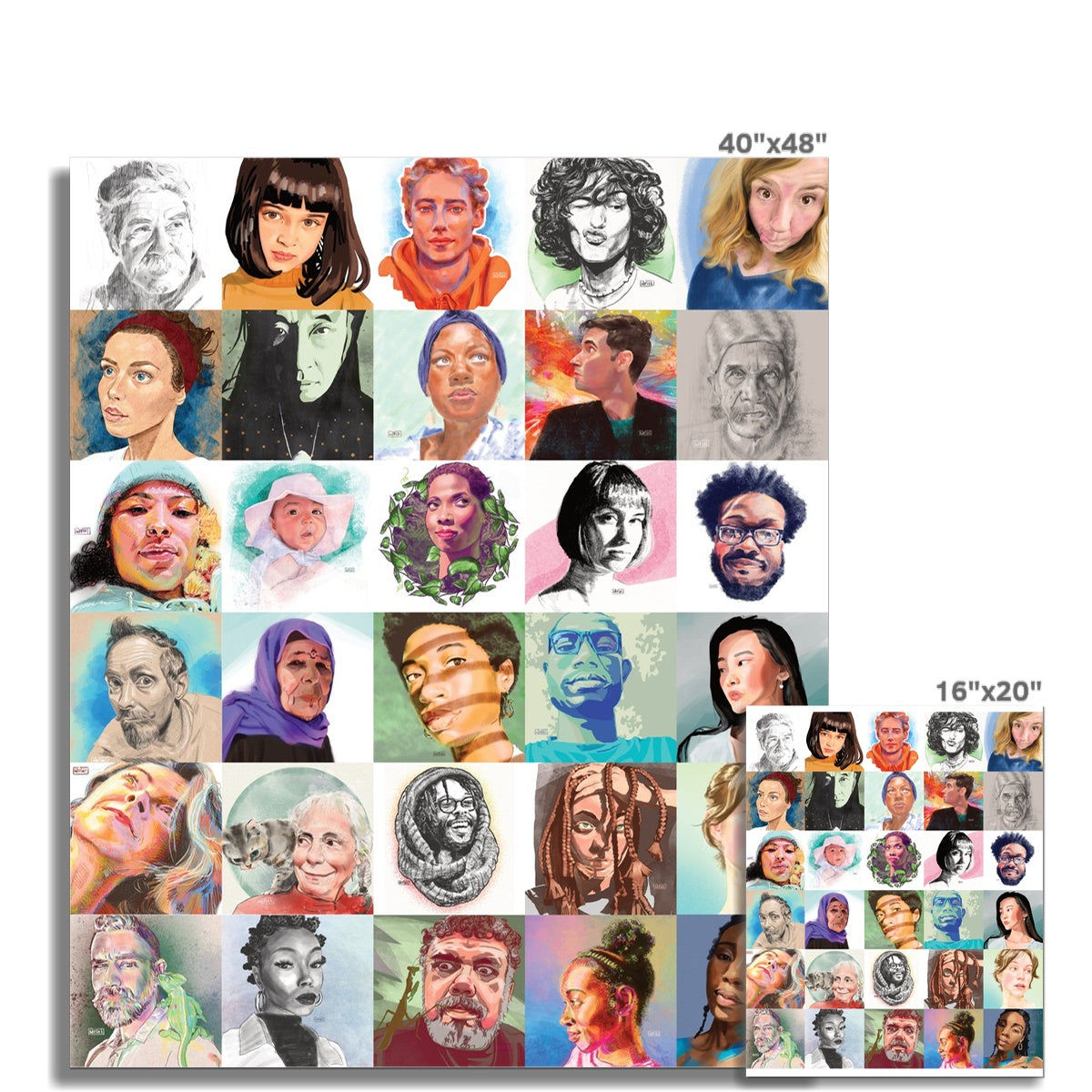 Kunstdruck von "30 Faces", 30 Portraits, die ich digital mit Apple Pencil auf dem iPad gemalt habe. Die Drucke sind mit einem matten Finish, in hoher Qualität, mit giclée Drucktechniken, sorgfältig gefertigt.